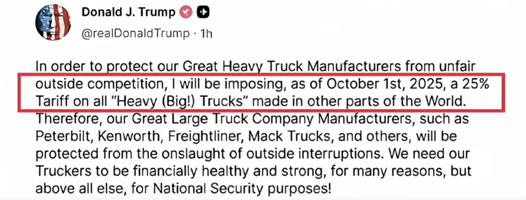 进口重型卡车(车辆总重量超2.6万磅,约11.7吨)加征25%关税,美国商务部4月已启动中重型卡车进口调查,特朗普在发言中还列举了美国MackTrucks(麦克卡车)等本土制造商,称此举是“保护它们免受外国猛烈冲击”。我国对美出口规模虽不大,但部分已通过技术合作进入美国中低端市场的企业,将因价格优势消失、利润压缩可能暂停或退出美国市场。